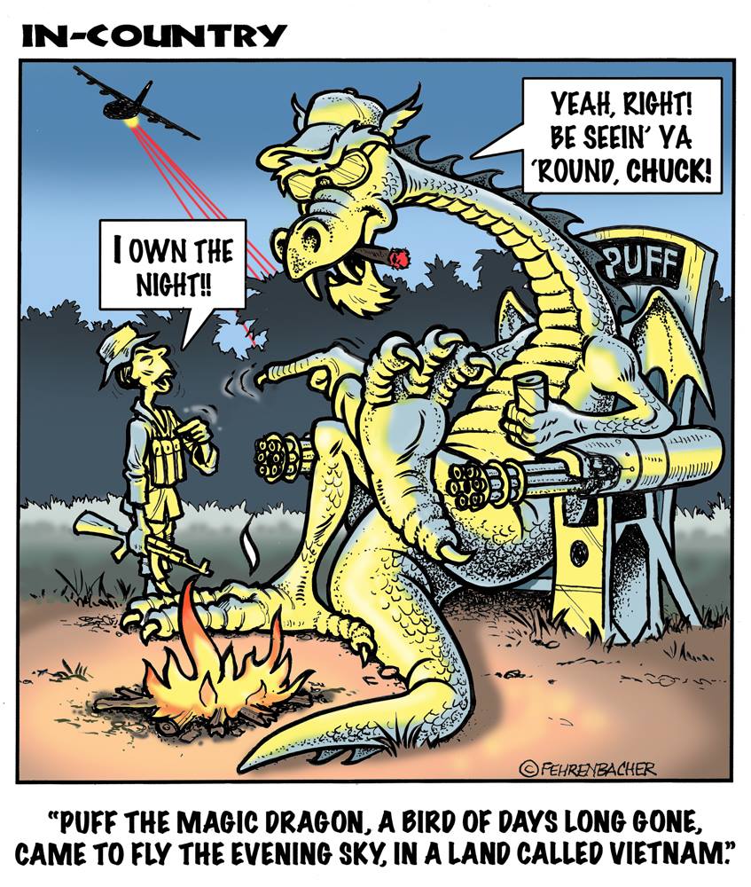 Phil enlisted in the Army in 1965 where you served for years in Vietnam. He became a graphic designer and has worked for the state of Oregon for 26 years. He retired in 2003 and started the Cartoon "In-Country". The cartoons reflect his experiences during his tour of duty in South Vietnam.