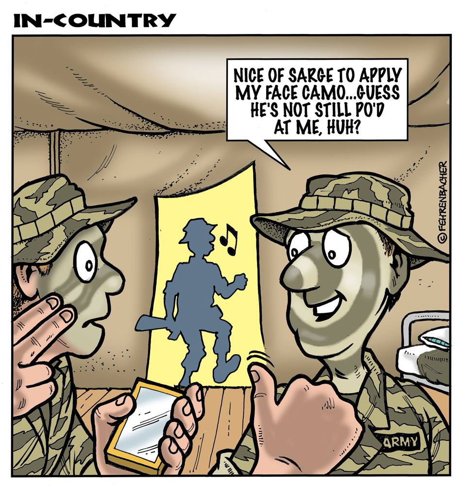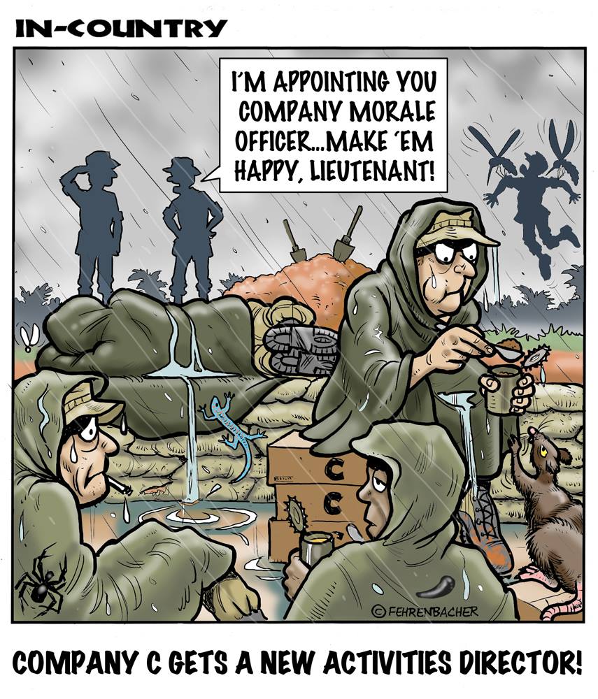 Phil enlisted in the Army in 1965 where you served for years in Vietnam. He became a graphic designer and has worked for the state of Oregon for 26 years. He retired in 2003 and started the Cartoon "In-Country". The cartoons reflect his experiences during his tour of duty in South Vietnam.