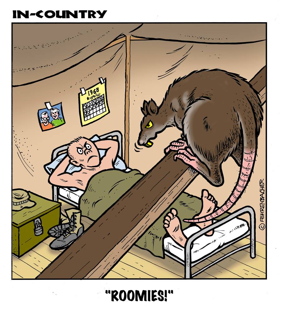 Phil enlisted in the Army in 1965 where you served for years in Vietnam. He became a graphic designer and has worked for the state of Oregon for 26 years. He retired in 2003 and started the Cartoon "In-Country". The cartoons reflect his experiences during his tour of duty in South Vietnam.
